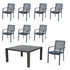 17 tlg. Alu / Rope Essgruppe Lexi grau + Trento XXL Tisch - bestehend aus: 8x Lexi Stapelsessel inkl. Sitzkissen + XXL Aluminium Tisch Trento ca. 152x152 cm
