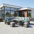 Das Dining Lounge Set Havanna DeLuxe - Moon Grey 3in1 besticht durch sein zeitgemäßes Design. Dank der im Lieferumfang enthaltenen zusätzlichen Armlehne kann das Set flexibel an die Terrassengestaltung angepasst werden.